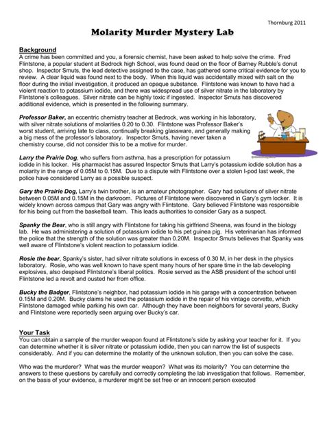 0 Response to "Read Molarity Lab Murder Investigation Answers PDF"